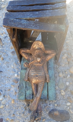 A Széchenyi téren, az MTA közelében elrejtett legújabb Kolotko szobrot is megnéztük, Duna-parton találtunk rá. Piszkos Fred, a kapitány hever egy jókora kövön imitált fa-bronz-láda hűvösében. Tisztelet az ukrán származású Kolotko Mihálynak (Kolodko Ungváron született, anyai ágon magyar származású, szerk. megjegyzése), ki így ismeri a magyar történelmet, irodalmat! És ennyi mini szoborral hinti tele Budapestet és más városunkat is !