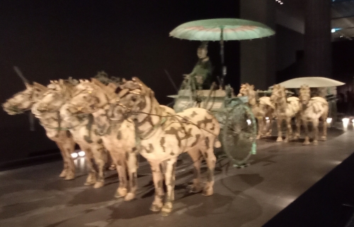 Csin Si Huang-ti császár rettegett a haláltól, szinte egész életében készült a túlvilágra. Hiedelme szerint ott is fényűző körülmények között élhet majd, ahová a paripák által röpített napernyős hintók viszik, amit természetesen fogathajtó hajt. A 6 művészet közé a szekérhajtás is beletartozott ebben a korban.